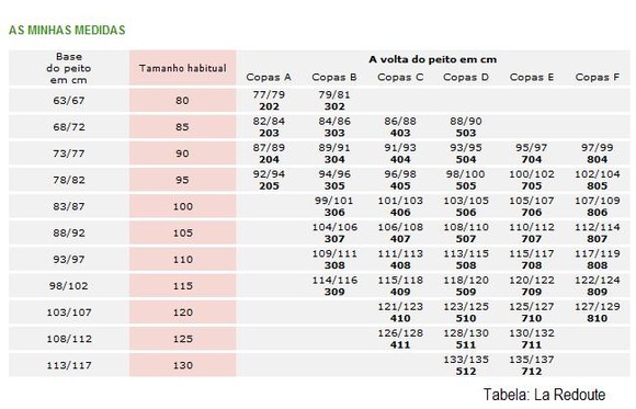 E aqui têem uma pequena tabela que poderá ajudar-vos a encontrar o tamanho dos vossos soutiens na La Redoute.
