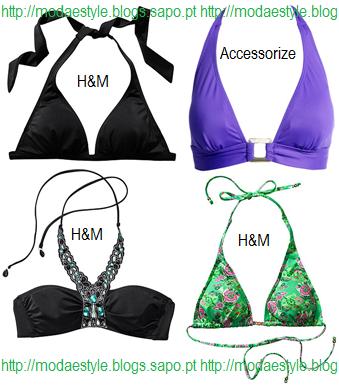 Os melhores modelos para ti são os em forma de triângulo, push-up, almofadados e os cai-cai (que esqueci de pôr na imagem), que darão "enchimento" ao teu peito. Se ainda quiseres dar uma ilusão de peito maior prefere os estampados, franzidos, cores fortes, bordados e alças que atam atrás do pescoço.