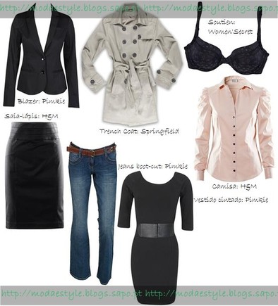 Deves de usar soutiens que proporcionem um bom suporte para o teu peito e que te sirvam na perfeição, para tal, usa soutiens com alças grossas (consulta este post). Saias lápis e vestidos ligeiramente justos nas ancas, ficam-te na perfeição. Deves de apostar em casacos cintados e cintos na zona da cintura, pois assenta-te que nem uma luva! Quanto ás calças, deves apostar nas de corte boot-cut e de cintura subida. Blazers ajustados, são também uma óptima escolha. Decotes em V e camisas, ficarão muito bem no teu corpo!