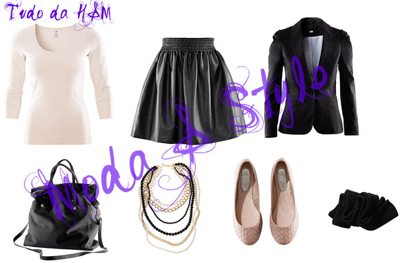 Como não pude de deixar escapar um look para o dia-a-dia, aqui está ele. Pode também ser usado em almoços em família, ou eventulidades semelhantes. É um look vintage, que tem o principal contraste entre o preto e o nude. A saia é em imitação de cabedal, em preto, em corte evâse. A camisola do mesmo género do primeiro look, em nude assim como as sabrinas com um padrão suavizado. Pus ainda um blazer em preto, e uma mala XXL no mesmo tom. Adorei os colares, em dourado e em preto, com toque vintage. Como não podiam faltar, uns collants grossos.