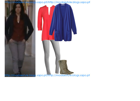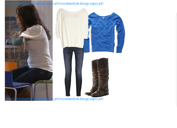 É o look, com que a Isabel se apresentou no 1º episódio da novela. Um look que cativou muitas raparigas.É sem dúvida muito bonito. É composto por uma camisola branca, que apliquei um cinto castanho, fino, umas jeans escuras, um casaco de malha vermelho, com corte irregular, e por fim umas UGG, castanhas, iguais ás da Isabel.