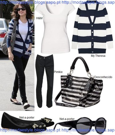 É um look excelente para passar uma bela tarde com os amigos ou uma ida ás compras. Na minha opinião, adoro o look, pois o cardigan completou o look, não o tornando básico. Uma t-shirt básica branca, um cardigan ás riscas pretas/brancas, umas skinny jeans em preto, uma mala ás riscas, umas sabrinas pretas e uns ocúlos de sol.
