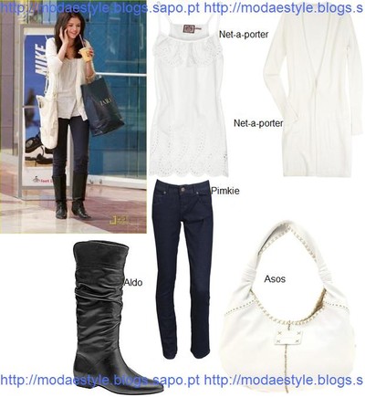 Aqui está um look muito bom para uma tarde passada no Shopping. A Selena neste look, não usa qualquer tipo de acessórios, mas tu podes sempre adicionar um conjunto de bangles e uns ocúlos de sol. O look é composto por um top branco, um cardigan também branco, umas skinny jeans escuras, umas botas de cano alto em preto e uma mala básica em branco.