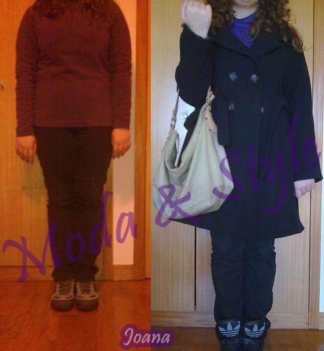 Roupa -A roupa em si está bem, casual, gostei muito. Mas ouve uma grande falha... A camisola com padrão. Era optimo se fosse uma básica, pois com o padrão do casaco não fica bem, isto claro na minha opinião! O casaco é bonito, é do Louis Vuitton. Acho que a camisola com padrão, estragou a harmonia que existia entre as peças.