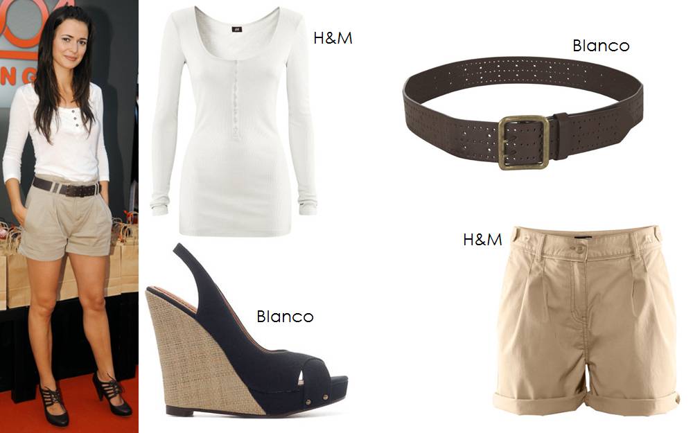 Este primeiro look é bastante simples mas mais formal e de certeza que todas têm peças assim no armário. Usem uns calções à escolha, sejam de cetim, ganga ou algodão e usem-nos com uma t-shirt lisa entalada. Como acessórios, escolham um cinto grosso e uns sapatos da cor do cinto, de preferência.