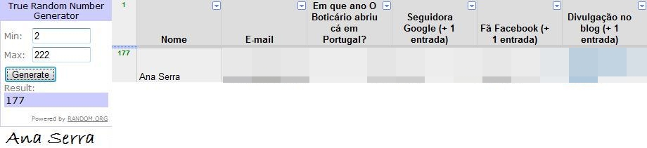 Contou-se a partir da entrada nº2 pois como podem notar a entrada nº1 são os dados. Parabéns à Ana Serra! Tens até 48 horas para enviar um e-mail para o modaestyle@hotmail.com com a tua morada e nome para o envio do prémio. Se em 48h a Ana não responder, farei novo sorteio.