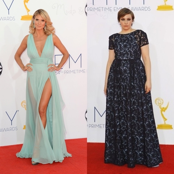 Heidi Klum - Ela poderá ter quebrado a clássica regra do: usas um decote, não usas racha, mas sabem quando uma pessoa tende em ousar e é bem sucedida? Pois é, foi o caso da menina Heidi que arrasou por completo! A cor assenta-lhe na perfeição, assim como o vestido de racha e decote pronunciados. Para mim, arrasou por completo!