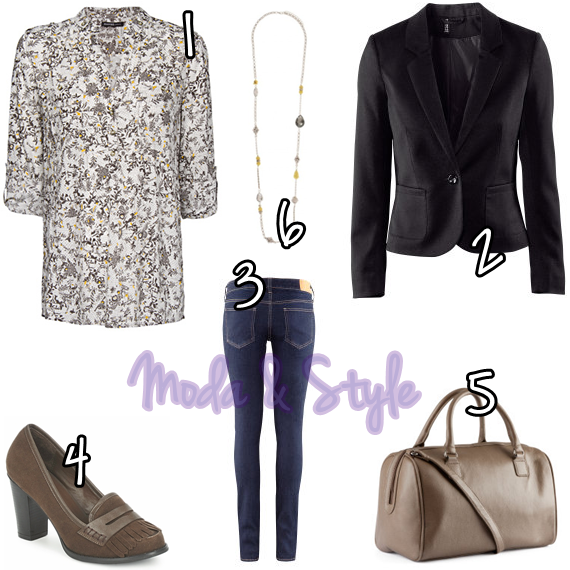 Quem disse que um look para o trabalho não poderia ser confortável? Basta saber conjugar as peças e acessórios certos para obter o devido efeito, como é o caso do look que apresento hoje, look esse que é composto por uma camisa florida e por umas jeans escuras que dão um aspecto mais discreto ao look, assim como o blazer que dá um ar mais maduro e é adequado a uma situação de trabalho. Como acessório um colar, uma mala em tons nude e uns sapatos de tacão médio em castanho. Assim se forma um look simples, abaixo de 100€ e na moda.