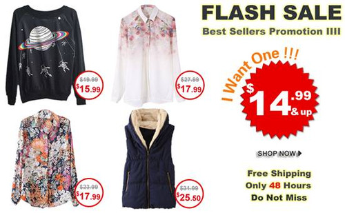 Super slim price flash sale of fashionable best sellers only for 48 hours! The prices starts at $14.99 up, don’t miss, girls! Go here and check all details and prices.