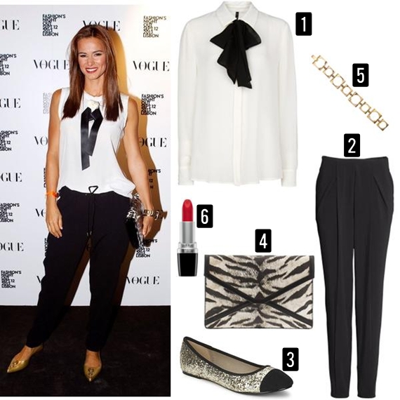 Continuando na onda de celebridades portuguesas, para a rubrica Get Her Look trago um outfit usado na VFNO 2013 pela belíssima Cláudia Vieira, outfit esse que lhe valeu não só uma noite de experiência resplandecente, como o prémio da mais bem vestida da VFNO 2013. E visto que estamos com temperaturas mais baixas, aproveitei e fiz umas pequenas alterações neste look totalmente black & white que conta com a presença dos acessórios irreverentes em tons de dourado. Inspire-se!