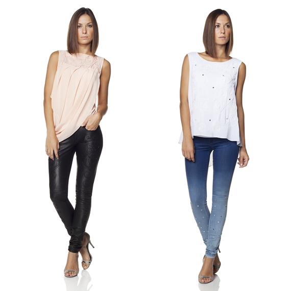 Na linha UNIQ by Salsa, juntam-se ao denim o couro, a seda, o algodão e o cupro, aplicados a vestidos, a calças, a coletes, a blusas e a camisolas dos mais diversos tons, desde o preto ao branco, com assimetrias e folhos, e, além disso, todas as peças desta linha contam com elementos e pormenores em cristais SWAROVSKI®ELEMENTS, que conferem um look sofisticado.