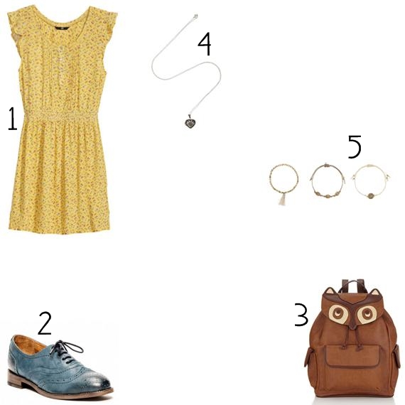 O azul e o amarelo, além de serem cores primárias, são duas cores que, a meu ver, contrastam lindamente entre si, pelo que facilmente temos um look colorido e bem alegre com estes dois tons. Decidi criar um look vintage moderno, ou seja, peguei em peças com traços vintage mas com cores que nos remontam à era atual. Visto que os brogues e o vestido já davam nas vistas, optei por escolher tons neutros para complementar - com principal destaque à mochila que se mostra irreverente e um quanto engraçada.