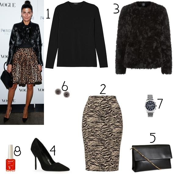 A pensar nessas ocasiões, trouxe hoje a recriação de um look que é perfeita para esses eventos, cuja predominante é o preto, havendo apenas um pequeno pormenor animal - da saia - e outro vermelho do verniz, que traz dinamismo ao coordenado. Como dizia o nosso amigo Dâmaso da obra Os Maias de Eça de Queirós, "Chique a valer!". E tal expressão se pode empregar ao conjunto que aqui apresento.