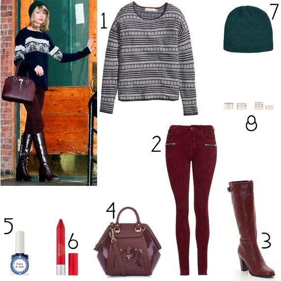 O look que serviu de mote para esta foi o que Taylor Swift usou numa das suas saídas para trabalhar. Cores como o azul escuro, o burgundy e o verde misturaram-se e resultaram neste que é o outfit mais natalício de todos os tempos, sem descurar a maquilhagem, claro. Só não se esqueça dos agasalhos, que são bastante importantes neste pico de frio.
