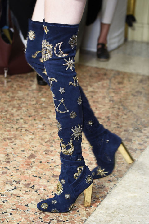 Não é só nos acessórios que os apontamentos metálicos surgem, na verdade eles estão bem presentes no segmento de calçado da nova coleção, e olhe que não é só para as festas. Se deseja dar um "up" no visual sem ter que dar muito nas vistas, invista nuns sapatos que tenham apontamentos metálicos - pode ser a biqueira, nos cordões, no tacão...
