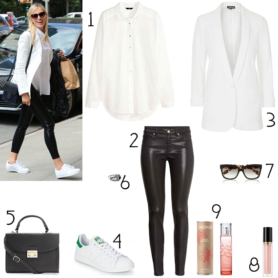 Dada as condições meteorológicas, a inspiração não é assim muita, mas já que se sai de casa, ao menos que se saia com estilo! Por isso mesmo, trouxe uma sugestão casual e descontraída da manequim Karolina Kurkova, em que as leggings em pele sintética pretas com uma camisa e um blazer brancos dominam o outfit. Depois, para dar um ar descontraído, nada melhor do que umas sapatilhas no mesmo tom. De resto, o minimalismo reina. Se hoje é um dia assim, aproveite e abuse desta recriação que lhe trago.
