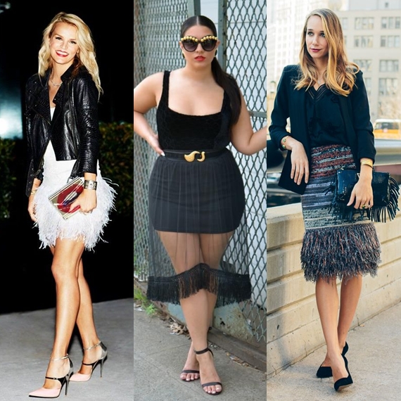 Quem pensava que as franjas só se usavam no dia-a-dia? Se você tinha essa ideia, aqui estou eu para eliminar todas e quaisquer dúvidas! As franjas são igualmente usadas em peças de festa, mostrando que são excelentes opções para celebrar o melhor que há na vida. Outras boas alternativas são as plumas e as penas.