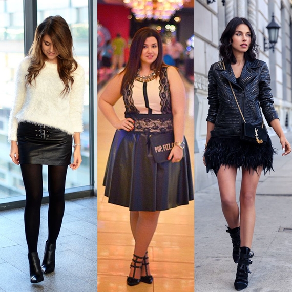 Embora a pele seja usada em grande parte dos conjuntos do quotidiano, este material, especialmente na versão sintética, é interessante para ser explorado em outfits de festa e para ser conjugado com outras texturas e cores.