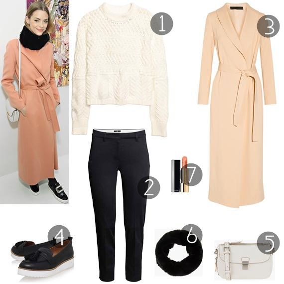 Num coordenado em que se juntam umas calças de fato, uma camisola de malha e um trench coat em tons nude, outros elementos juntam-se ao look, como é o caso da estola (que nunca usei em looks aqui no blog) e da mala branca, que combina perfeitamente nesta linda mistura de cores. Ora como os acessórios não são muitos, a maquilhagem, embora singela, tem um toque de cor, a do pêssego, que funciona lindamente no resultado final.
