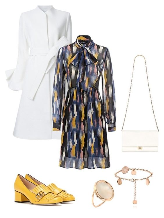 O sobretudo de corte irregular é a peça-chave de todo o conjunto, uma vez que é ele que dá cor e se destaca de todas as outras peças. Depois, a camisa azul às riscas, de corte masculino, transmite atitude, juntamente com o laço, feito do mesmo padrão (pode perfeitamente ser substituído por um lenço ou cachecol). A estas peças, juntam-se as calças largas e os botins, ambos em preto. Para o trabalho, escolhi uma mala de estilo clássico em branco, porém, para uma saída casual, a clutch estampada serve perfeitamente.