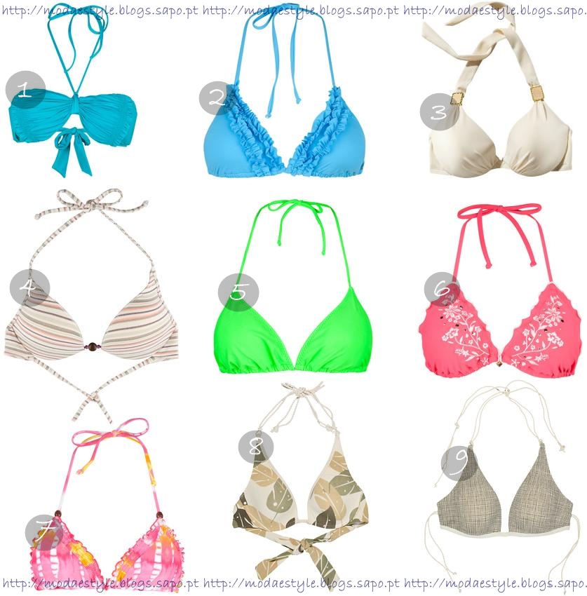 Se tens peito pequeno, aposta em soutiens com folhos ou pormenores que chamem a atenção para o peito (bordados, argolas, ...), soutiens push-up que permitem "projectar" o peito para o meio e em cores neon/fortes pois o Sol ao incidir no bíquini, reflecte a cor, dando uma ilusão de preenchimento.