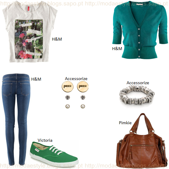 Este é um look simples, não muito vistoso e prático para um concerto. Apesar de simples e prático, não deixa de ser bonito, visto que tive o cuidado de escolher alguns pontos de cor (as sapatilhase o cardigan) para o look não ficar demasiado sem cor.