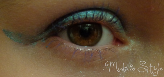 - Quando acabei de aplicar as sombras, apliquei o Lápis Contorno de Olhos na cor Green Modern da linha Make B. Infinit, para formar um eye cat
