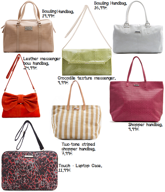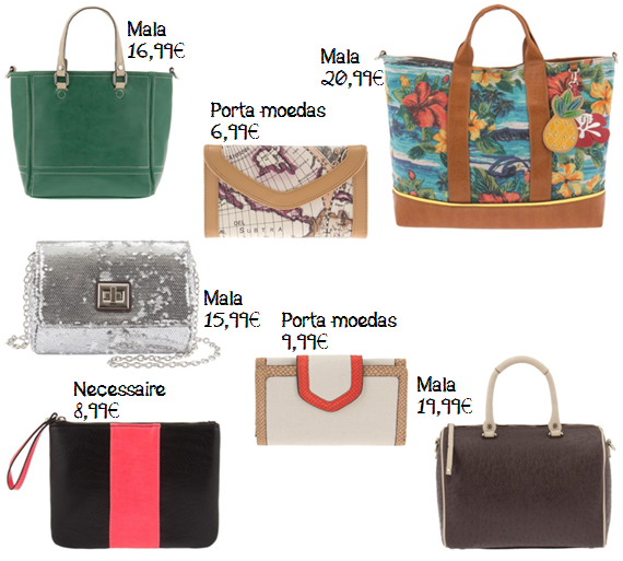 No que diz respeito às minhas escolhas, decidi escolher malas para todas as ocasiões e porta-moedas (adoro aquele de 6,99€, vou ver se o consigo arranjar em loja! Ando mesmo a precisar de um novo).