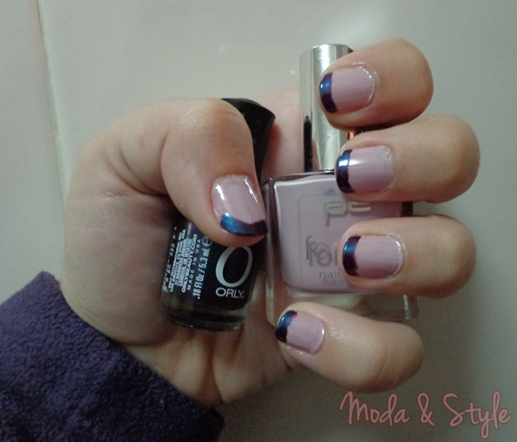 Ora bem, decidi pôr-me a engenhocar um bocadinho e misturar dois tons de roxo que acho absolutamente fantásticos, criando assim uma manicure francesa na minha cor favorita, o roxo. Ainda estou a tentar decifrar como se vê a cor nos vernizes da Orly, pois acho imensa piada a este e, quando acabar, quero ver se o volto a comprar. Alguém me ajuda?