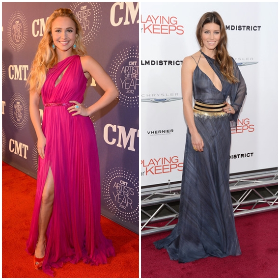 Jessica Biel - Não gostei muito do vestido, mais em concreto do seu design. Acho que aquele detalhe ali em dourado não fica muito bem, depois aquele decote não me convence muito... Acho que mudando estes aspectos, o look ficaria melhor.