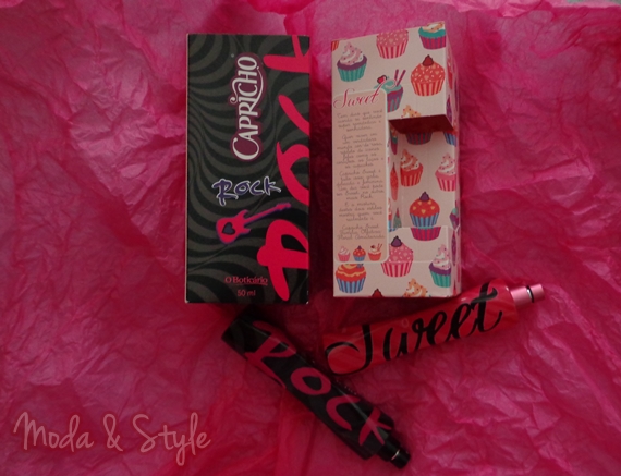 Como referi em cima, esta é uma prenda três em dois! São dois perfumes, cada um de 50ml que dão origem a três fragrâncias! De dia, podemos usar o Sweet, uma fragrância mais doce e floral, com extractos de framboesa, amora, limão fresco, entre outros extractos. De noite, podemos usar o Rock, uma fragrância amadeirada, com extractos de sândalo, black musk, musgo de carvalho, entre outros extractos. Caso se sintam uma Sweet Rock girl, misturem as duas fragrâncias e et voila! Acho que é o primeiro perfume que conheço que consegue satisfazer o estado de espírito de uma pessoa que se sente dividida quanto ao seu estado de espírito.