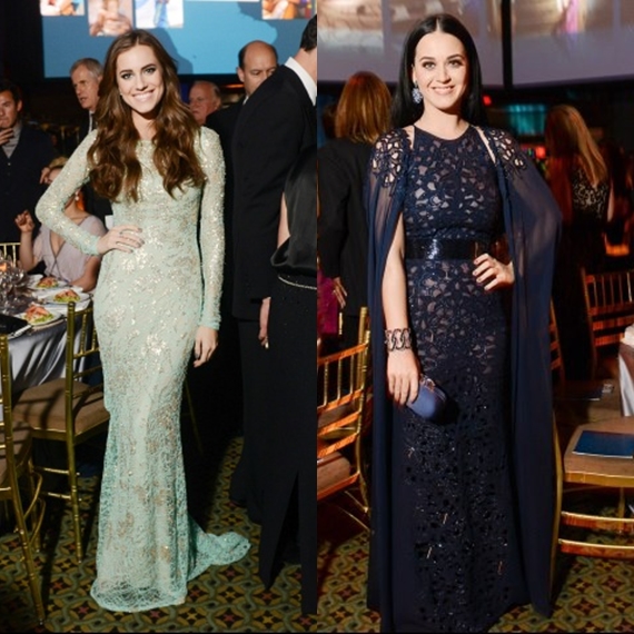 Katy Perry - Acho que a cantora até fica bem neste vestido mas apenas trocaria a cor do mesmo, acho que com a cor de cabelo que tem, cores escuras não são as opções mais acertadas. Acho que também um penteado mais elaborado aqui ficaria melhor.