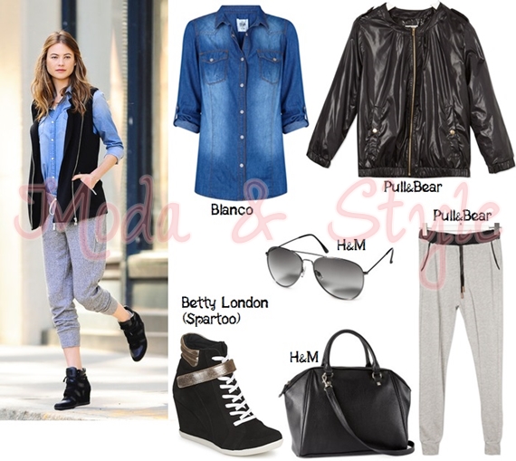 A anjinha da Victorias'Secret mostrou que usar calças de fato de treino não é necessariamente só para usar-se na ida ao ginásio, podendo também usar-se numa ida ás compras ou durante o fim-de-semana, mostrando uma atitude mais casual e mais descontraída. Além disso, mostrou uma outra forma de usar sapatilhas de cunha pretas que, na minha opinião, resultou muito bem.
