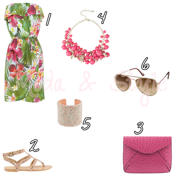 1. Vestido Blanco 20,99€ (Promoção) 2. Sandálias Parfois 19,99€ 3. Mala Parfois 19,99€ 4. Colar Blanco 11,89€ (Promoção) 5. Bracelete Parfois 4,99€ (Promoção) 6. óculos de sol H&M 6,95€