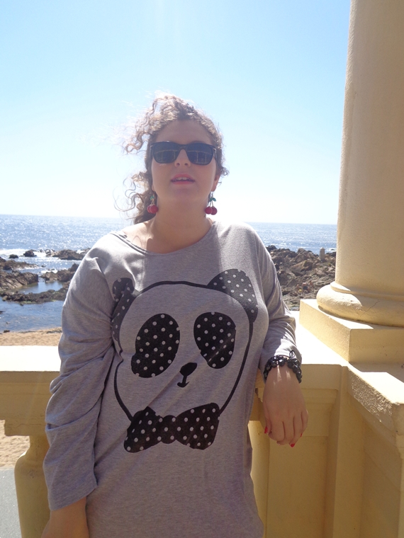 Ora com tanto frio que estava, decidi levar algo de manga comprida, para ver se dispensava o casaco. Pois sim, estava cá com uma sorte! Lá acabei por escolher esta camisola/túnica panda da Romwe, que é super querida e amorosa. Como era comprida o suficiente, decidi que era uma excelente ideia combiná-la com umas leggings com textura de crocodilo em preto. Assim, teria a certeza de que estaria confortável sem perder estilo. Para colorir um pouco o look, decidi investir nestes brincos amorosos, também da Romwe. Juro-vos que me senti como se saísse de uma história de mangá japonesa!